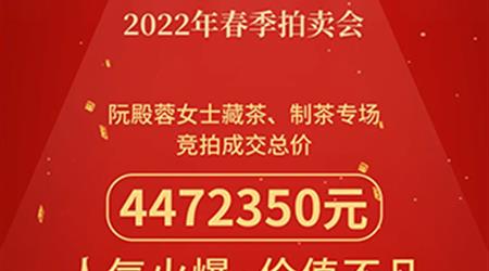 萬眾矚目的“陳年普洱及佳茗”成交喜人,中國嘉德2022春季拍賣會(huì)阮殿蓉女士藏茶、制茶拍賣專場總攬4472350元。